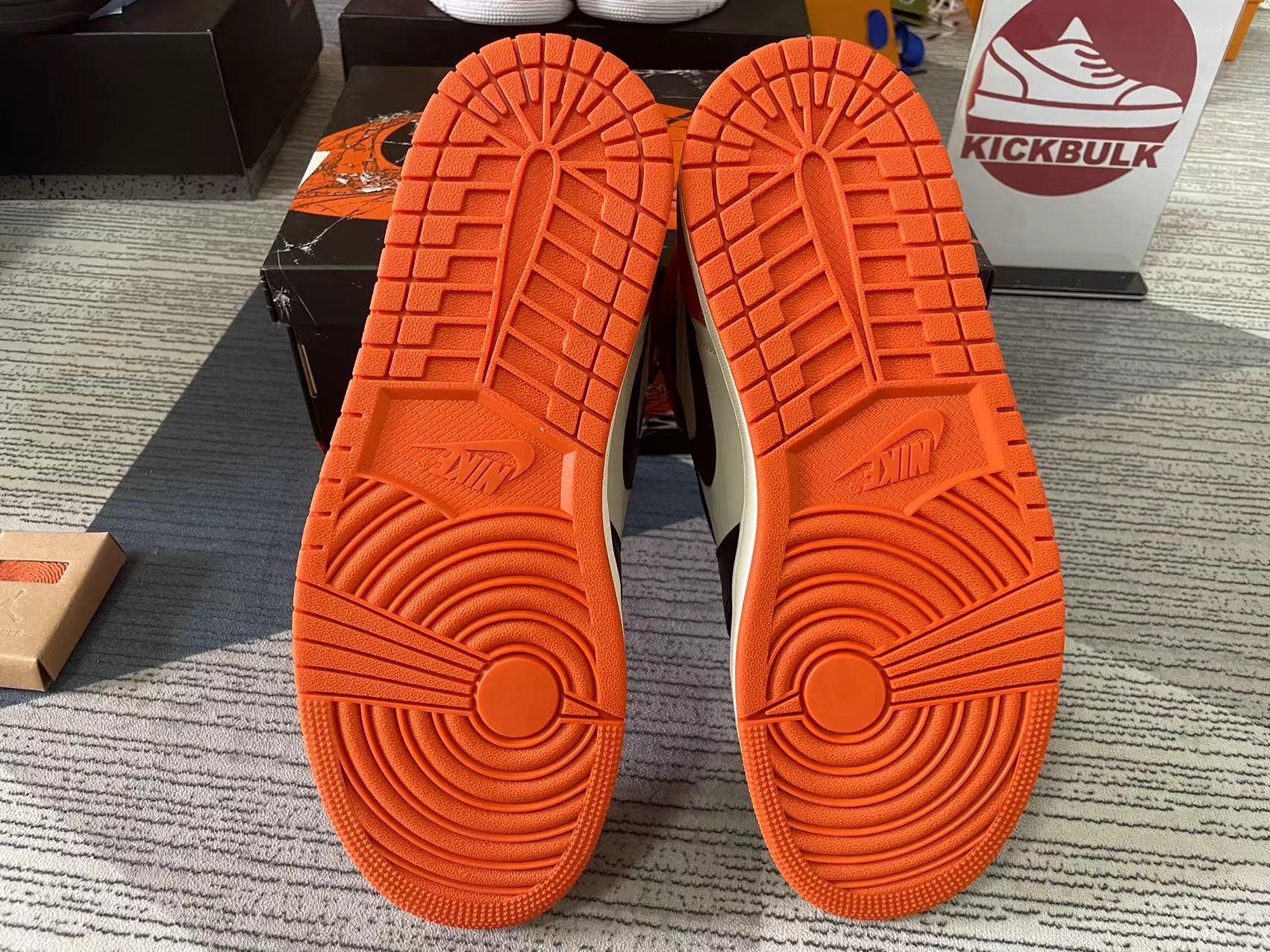 Inspired by the jersey Michael Jordan wore during an exhibition game in Italy after his rookie season, the 2025 version of the Air Jordan 1 Retro High OG 'Shattered Backboard' have a white leather upper with a black forefoot overlay and a black Swoosh. Orange pops decorate the toe box, heel and Wings-branded collar flap. The Nike Air tag adorns the tongue to maintain the signature look.